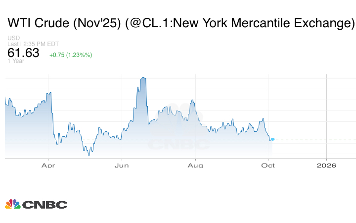 فيما ارتفع خام غرب تكساس الوسيط الأميركي 81 سنتاً أو 1.33% لتبلغ عند التسوية 61.69 دولار للبرميل.