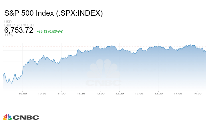 بينما أغلق مؤشر S&P 500 التعاملات على صعود 39.13 نقطة أو بنسبة 0.58% إلى 6753.72 نقطة.