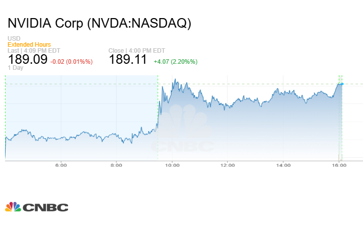 وارتفعت أسهم إنفيديا بأكثر من 2% بعد أن أشار الرئيس التنفيذي للشركة، جنسن هوانغ، إلى ارتفاع الطلب على الحوسبة خلال الأشهر الأخيرة، وقال لشبكة CNBC: "هذا العام، وخاصةً خلال الأشهر الستة الماضية، شهد الطلب على الحوسبة ارتفاعاً ملحوظاً". كما أكد هوانغ مشاركة الشركة في تمويل شركة الذكاء الاصطناعي الناشئة "إكس إيه آي" التابعة لرجل الأعمال إيلون ماسك، وقال إنه "متحمس للغاية لفرصة التمويل المتاحة".