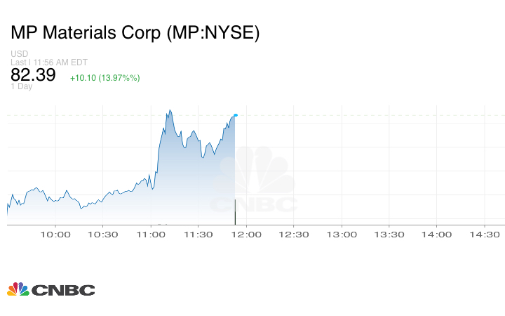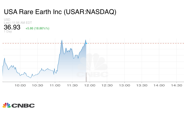 ارتفع سهم إم بي ماتيريالز بنسبة 15%، بينما ارتفع سهم يو إس إيه راير إيرث بنسبة 19%.
