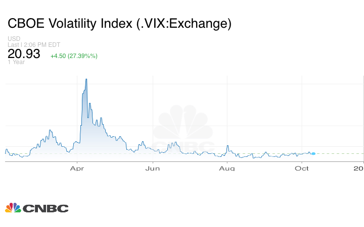 ارتفع مؤشر الخوف في وول ستريت (VIX) إلى ما فوق 20 بعد أن هدد الرئيس دونالد ترامب الصين بفرض رسوم جمركية أعلى يوم الجمعة.