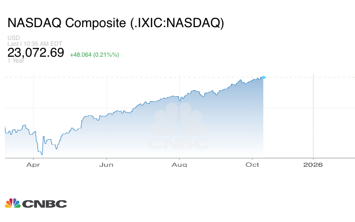 ارتفع مؤشر ناسداك المركب بنسبة 0.4% في تعاملات صباح يوم الجمعة، مسجلًا رقمًا قياسياً جديدًا خلال اليوم عند 23,119.91 نقطة.