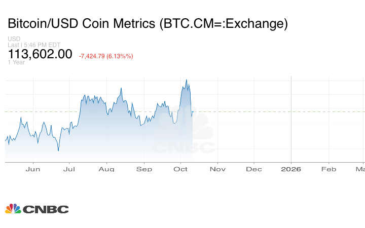 وتكبدت بتكوين خسائر قاسية، وهبطت بنحو 6%، إلى مستوى 113,602.00 ألف دولار.