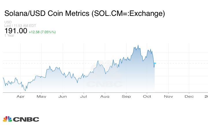 وقفزت عملة سولانا بنسبة 7.5% إلى 191 دولار.