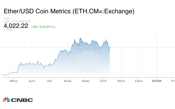 وعادت الإيثريوم إلى تحقيق مكاسب حيث ارتفعت بنسبة 6.2% خلال اليوم وتستعيد سعر 4000 دولار.