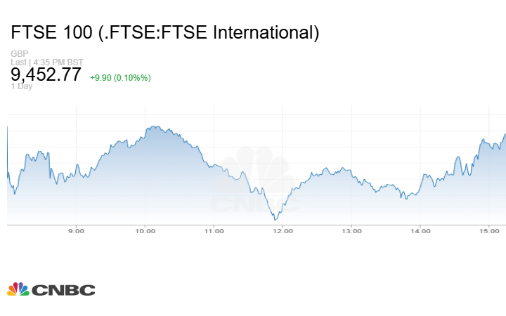 بينما صعد مؤشر FTSE 100 البريطاني 9.90 نقطة أو بنسبة 0.10% عند الإغلاق إلى مستوى 9452.77 نقطة.