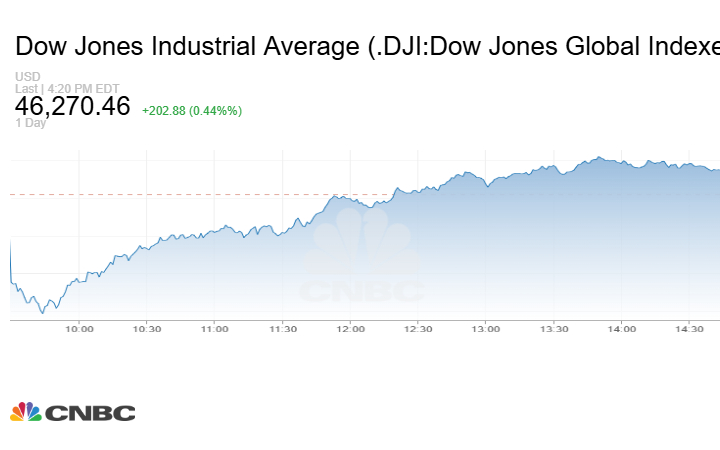 ارتفع مؤشر Dow Jones الصناعي بنحو 202.88 نقطة أو بنسبة 0.44% عند إغلاق تعاملات الثلاثاء إلى 46270.46 نقطة.