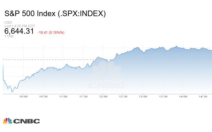 بينما أغلق مؤشر S&P 500 التعاملات على هبوط 10.41 نقطة أو بنسبة 0.16% إلى 6644.31 نقطة.