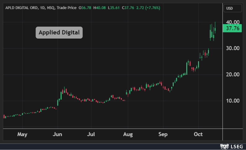 كما قفز سهم Applied Digital بنسبة 8% إلى أعلى مستوى له منذ عام 2004.