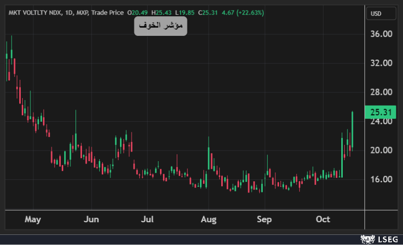 وقفز مؤشر الخوف في وول ستريت بنحو 23% ليغلق عند أعلى مستوياته في 5 اشهر وسط موجة من القلق بشأن تعرض البنوك الإقليمية للقروض الرديئة، خاصة تلك الممنوحة لشركات سيارات متعثرة، مما يشكل خطراً على القطاع المالي في وول ستريت.