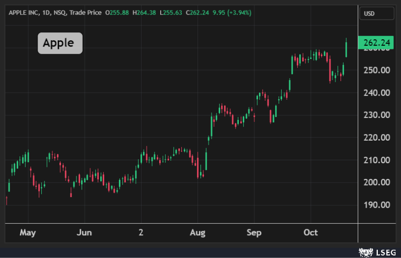 قفز سهم Apple بنحو 4% في جلسة الإثنين مسجلاً إغلاقاً قياسياُ جديداُ، لتضيف الشركة 148 مليار دولار إلى قيمتها السوقية في يوم واحد.