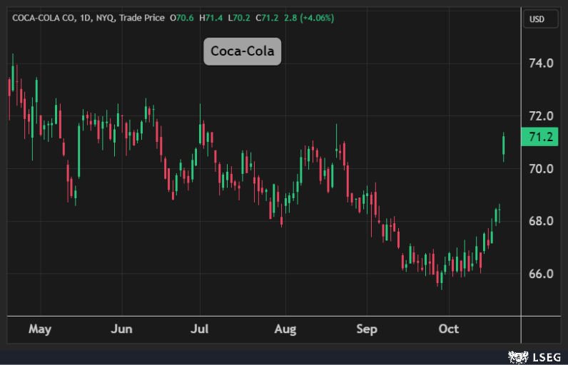 ارتفع سهم Coca-Cola بنحو 4% في جلسة الثلاثاء مسجلاً أعلى مكاسب يومية في 8 أشهر ، لتضيف الشركة 12 مليار دولار إلى قيمتها السوقية في يوم واحد.