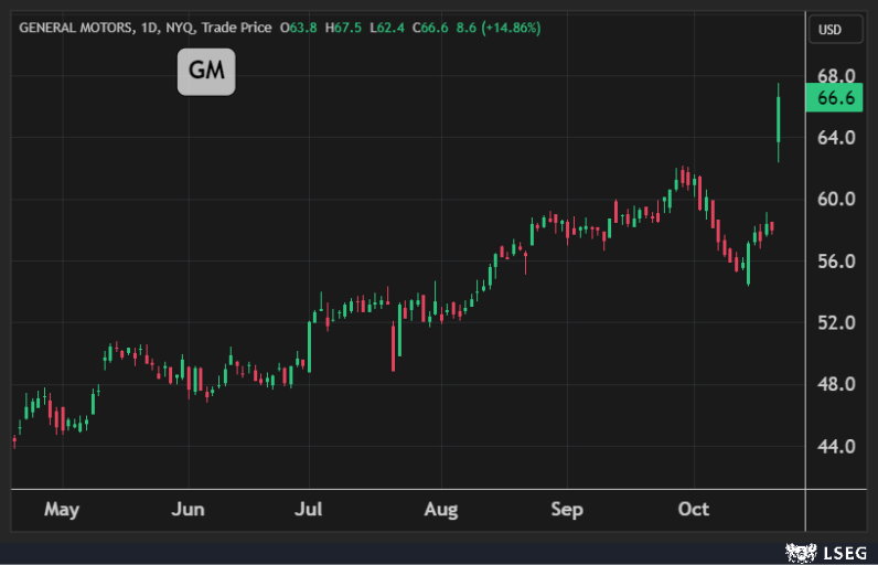 قفز سهم General Motors بنسبة 15% في جلسة الثلاثاء ليغلق عند أعلى مستوى في تاريخه بعد أن رفعت صانعة السيارات من توقعاتها وخففت من تأثير الرسوم الجمركية المتوقع.