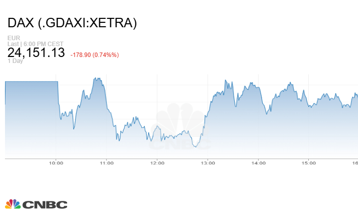 كما أغلق مؤشر DAX الألماني الجلسة على هبوط 178.90 نقطة أو بنسبة 0.74% إلى مستوى 24151.13 نقطة.