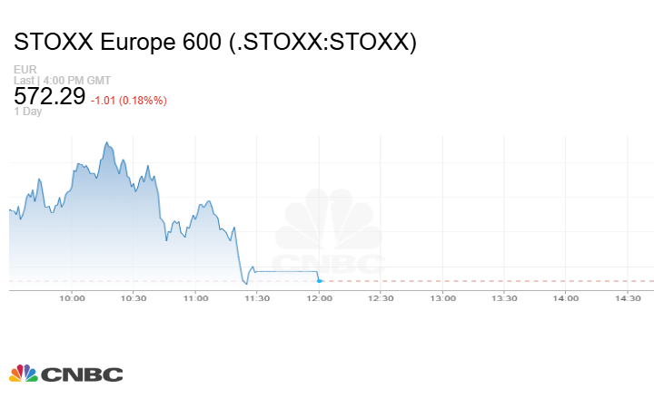 وانخفض مؤشر Stoxx 600 الأوروبي 1.01 نقطة أو بنسبة 0.18% إلى مستوى 572.29 نقطة في نهاية التعاملات.