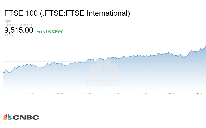 بينما صعد مؤشر FTSE 100 البريطاني 88.01 نقطة أو بنسبة 0.93% عند الإغلاق إلى مستوى 9515 نقطة.
