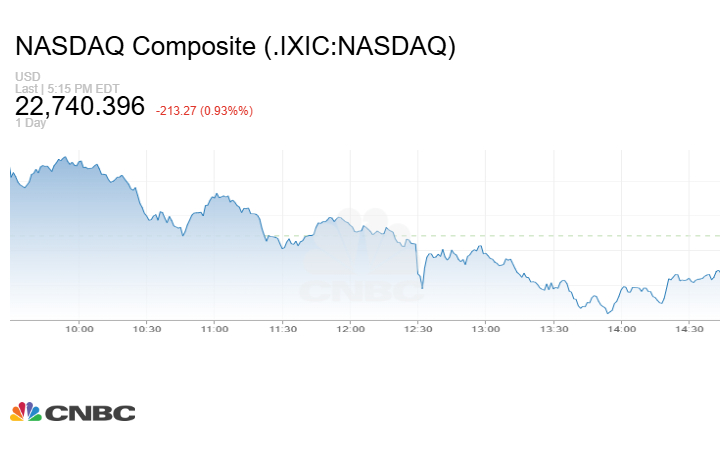 وتراجع مؤشر Nasdaq المركب عند الإغلاق بنحو 213.27 نقطة أو بنسبة 0.93% إلى 22740.40 نقطة.