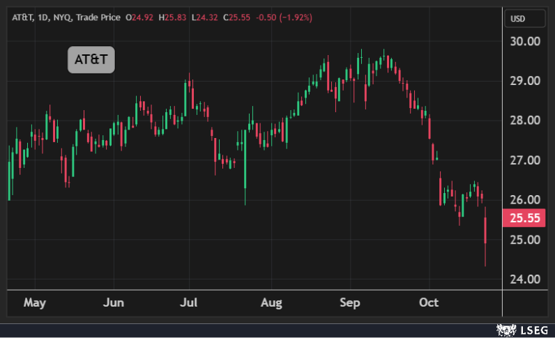 تراجع سهم AT&T بنسبة 2% في جلسة الأربعاء ليغلق عند أدنى مستوياته في 8 أشهر بعد أن أعلنت شركة الاتصالات عن إيرادات أدنى من التوقعات.