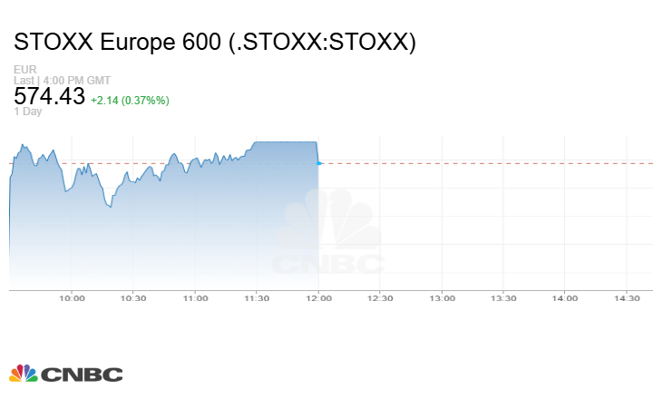 وارتفع مؤشر Stoxx 600 الأوروبي 2.14 نقطة أو بنسبة 0.37% إلى مستوى 574.43 نقطة في نهاية التعاملات.