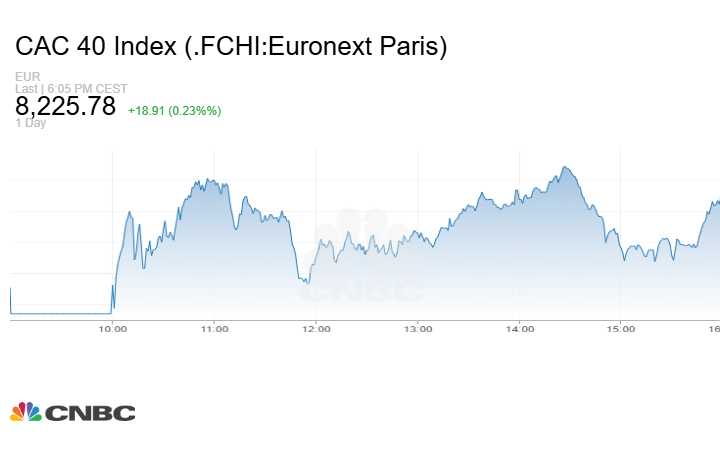 في حين ارتفع مؤشر CAC 40 الفرنسي بنحو 18.91 نقطة أو بنسبة 0.23% عند الإغلاق إلى مستوى 8225.78 نقطة.