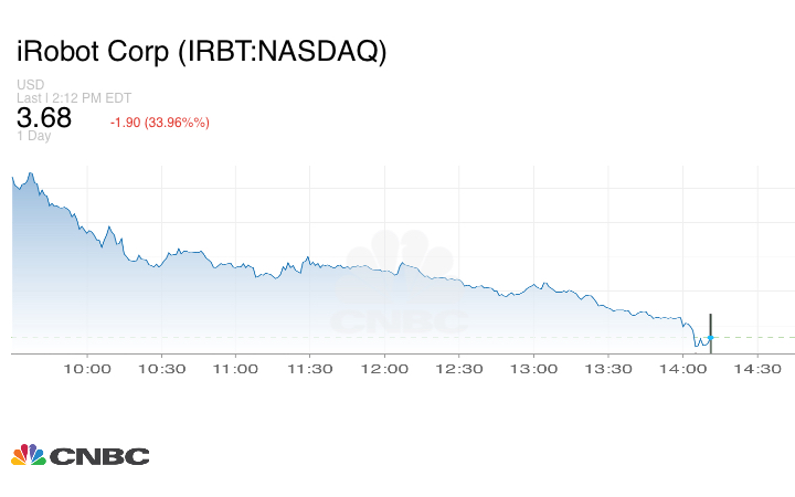 انخفضت أسهم شركة آي روبوت iRobot بأكثر من 30%، يوم الاثنين 27 اكتوبر/ تشرين الأول، بعد أن حذرت الشركة من أن بحثها عن مشترٍ قد واجه عقبة كبيرة، وأن وضعها المالي لا يزال متردياً.