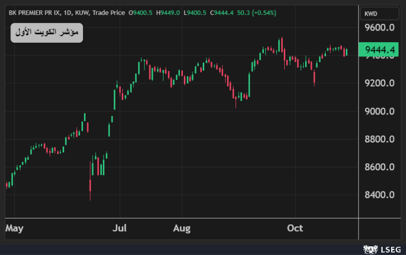 ارتفع مؤشر الكويت الأول بنسبة 0.5% في يوم الثلاثاء مسجلاً أعلى مكاسب يومية في أسبوعين بدعم من ارتفاع سهمي بيتك وبنك وربة بنسبة 0.5% و1.1% على التوالي.