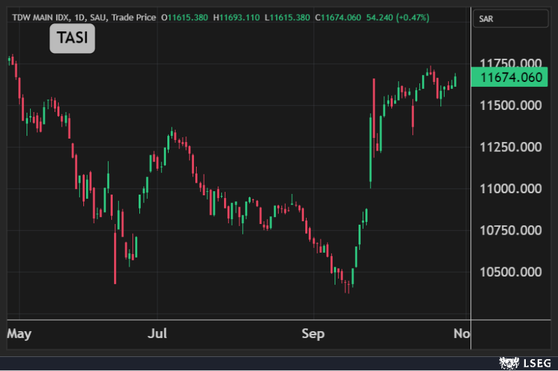 ارتفع مؤشر تاسي بنسبة 0.5% في جلسة الثلاثاء مسجلاً ثاني مكاسب يومية على التوالي بدعم من ارتفاع سهم البنك الأهلي بنسبة 1.7%.