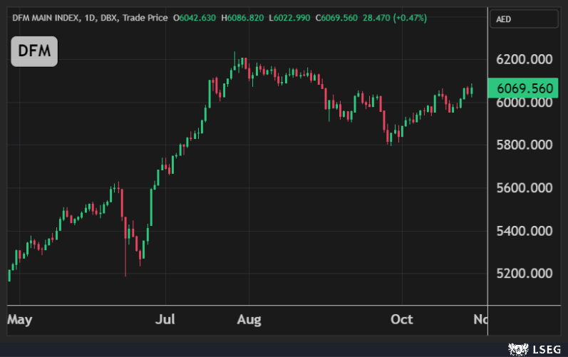وأعلن بنك دبي الإسلامي بعد انتهاء الجلسة عن انخفاض أرباحه الصافية بنسبة 8% على أساس سنوي إلى 1.86 مليار درهم في فترة الربع الثالث 2025