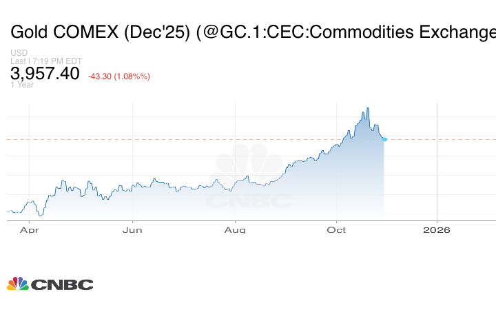 هذا وارتفعت أسعار الذهب بنحو 52% منذ بداية العام لتصل إلى أعلى مستوياتها على الإطلاق عند 4381.21 دولار في 20 أكتوبر تشرين الأول، مدعومة بحالة عدم اليقين الجيوسياسي والاقتصادي ورهانات خفض أسعار واستمرار مشتريات البنوك المركزية.