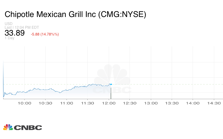 انخفضت أسهم شيبوتل Chipotle بأكثر من 17% يوم الخميس، مما يضع السهم على مسار أسوأ أداء يومي له منذ عام 2012.