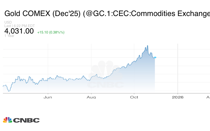 وزادت العقود الأميركية الآجلة للذهب تسليم ديسمبر/ كانون الأول 0.4% إلى 4015.9 دولار للأونصة عند التسوية.
