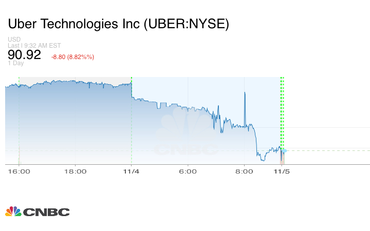 انخفضت أسهم أوبر بأكثر من 8% قبل بدء التداول، حتى بعد أن تجاوزت إيرادات شركة مشاركة الرحلات توقعات وول ستريت للربع الثالث.