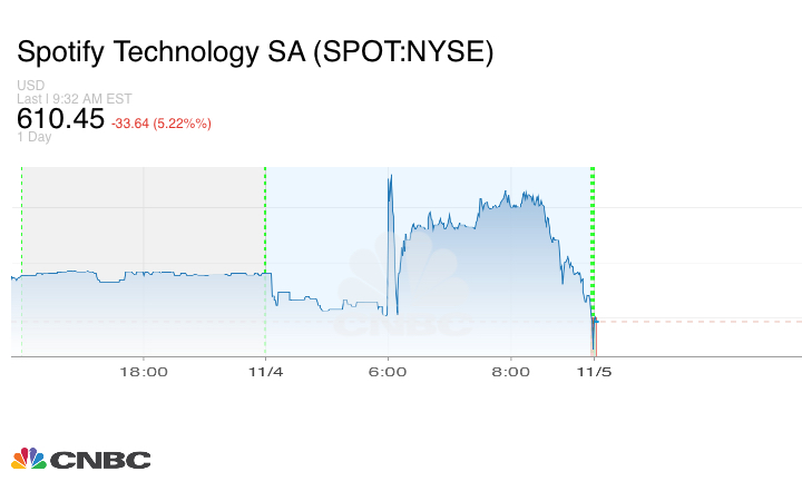 ارتفعت أسهم Spotify بأكثر من 5% في تداولات ما قبل السوق يوم الثلاثاء، بعد أن تجاوزت أرباح وإيرادات خدمة بث الموسيقى للربع الثالث توقعات وول ستريت.