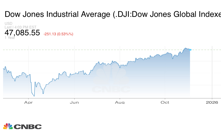 وتراجع مؤشر داو جونز الصناعي 251 نقطة، أي 0.5%، مسجلاً 47.085.55 عند الإغلاق.