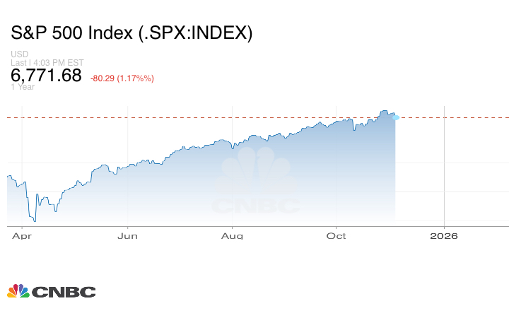 ومع ارتفع المخاوف من فقاعة الذكاء الاصطناعي، انخفض مؤشر ستاندرد آند بورز 500 بنسبة 1.2%، إلى 6,771.68 نقطة عند الإغلاق.