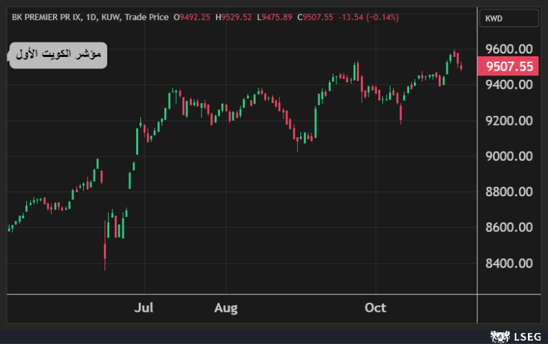 تراجع مؤشر الكويت الأول بنسبة 0.14% في يوم الثلاثاء مسجلاً ثالث خسارة يومية على التوالي بضغط من انخفاض سهمي بيتك والوطني بنسبة 0.25% و1% على التوالي.