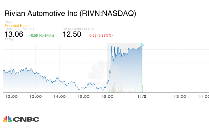 ارتفع سهم ريفيان بأكثر من 3% في التداولات الممتدة بعد الإغلاق يوم الثلاثاء، بعد أن أغلق منخفضاً بنسبة 5.2% عند 12.50 دولاراً أميركياً للسهم. وقد انخفض السهم بنسبة تقارب 6% هذا العام.