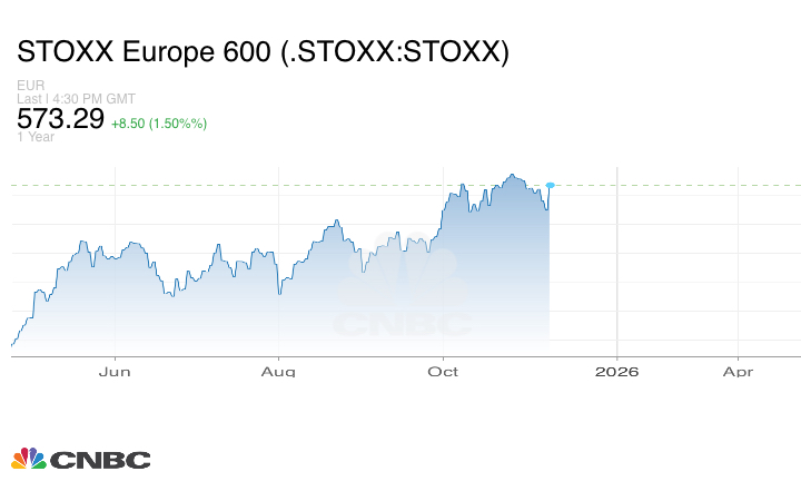 كسب مؤشر ستوكس 600 الأوروبي بنسبة 1.5% إلى 573.29 عند الإغلاق، مع أداء إيجابي للبورصات الرئيسية وجميع القطاعات تقريباً.