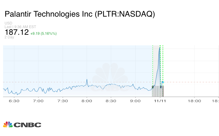 ارتفعت أسهم شركة تكنولوجيا الدفاع بأكثر من 5%. وكان السهم قد انخفض بأكثر من 11% وسط موجة بيع واسعة النطاق لأسهم شركات الذكاء الاصطناعي الأسبوع الماضي.