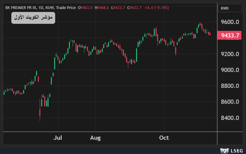 تراجع مؤشر الكويت الأول بنسبة 0.15% في جلسة الإثنين مسجلاً ثاني خسارة يومية على التوالي بضغط من انخفاض سهمي بيتك والوطني بنسبة 0.25% و1% على التوالي.