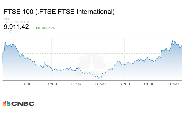 وفي المملكة المتحدة، ارتفع مؤشر فوتسي بنحو 0.1% إلى 9911.42 نقطة.