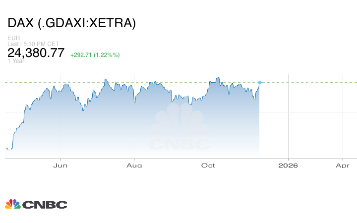 فيما صعد مؤشر داكس الألماني 1.22% ليصل إلى 24,380.77 نقطة.