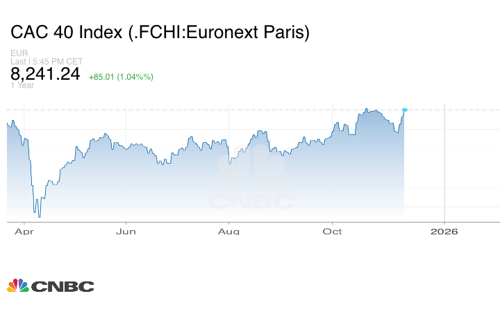ارتفعت الأسهم الأوروبية بشكل قياسي عند الإغلاق، يوم الأربعاء 12 نوفمبر/ تشرين الثاني، محافظةً على الزخم الإيجابي الذي شهدته الأسواق في وقت سابق من الأسبوع، مع بروز آمال في انتهاء إغلاق الحكومة الأميركية قريباً.