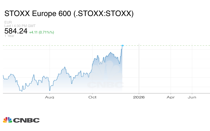 وصعد مؤشر ستوكس 600 الأوروبي الشامل بنسبة 0.7% ليصل إلى 584.24 نقطة، مع تسجيل معظم البورصات والقطاعات الرئيسية لأداء إيجابي.