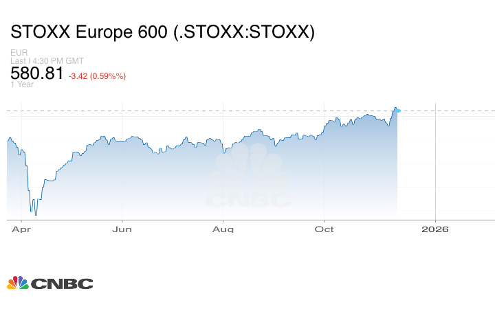 انخفض مؤشر ستوكس 600 الأوروبي بنسبة 0.5%، مغلقاً عند 590.81 نقطة، وسط تباين أداء القطاعات والبورصات.