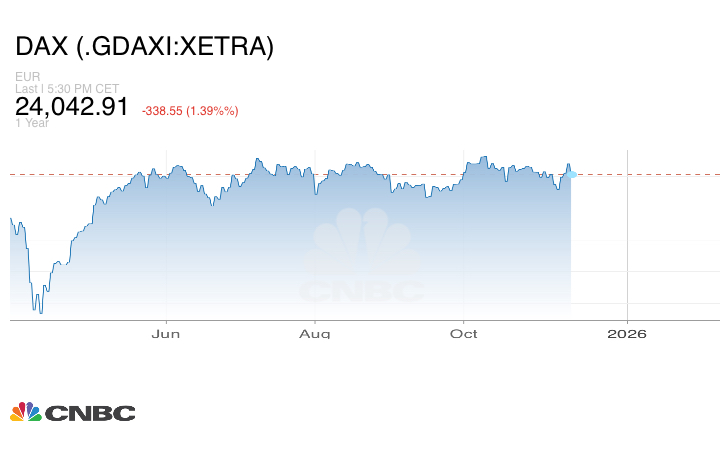 وتراجع مؤشر داكس الألماني 1.3%، مسجلاً في الختام 24.042.91 نقطة.