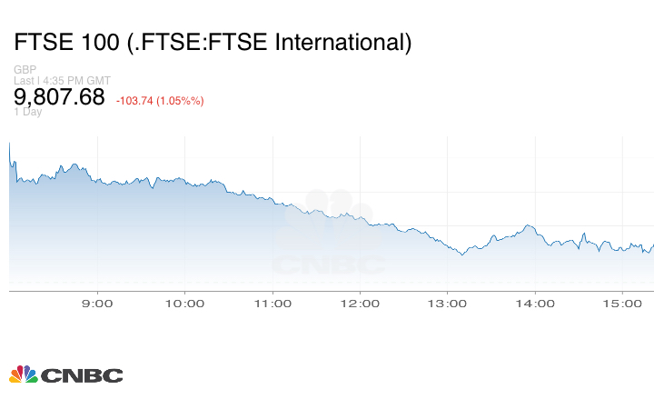 وخسر مؤشر فوتسي 100 البريطاني 1.05%، مغلقاً عند 9.807.68 نقطة.