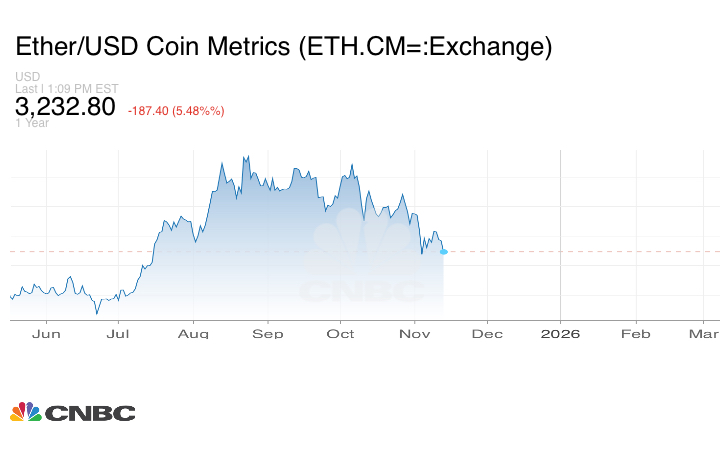 وتراجعت إيثريوم 5.4% إلى 3232 دولاراً.
