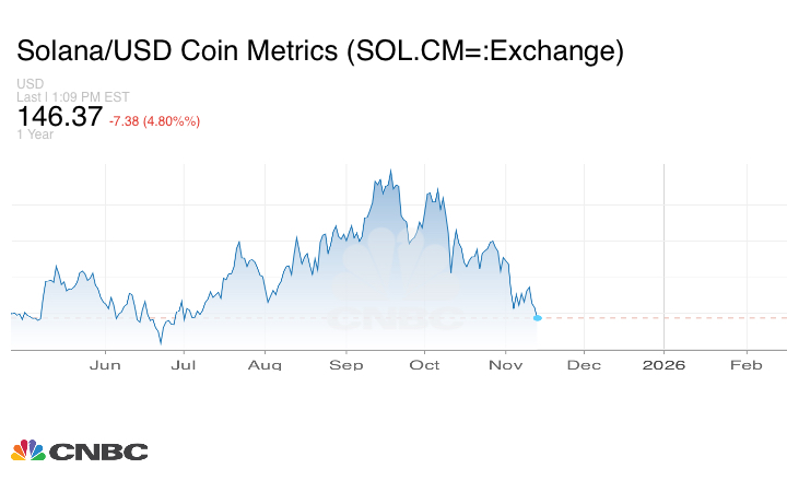 وهبطت "إكس آر بي" بنحو 2.4% إلى 2.39 دولار، فيما فقدت سولانا نحو من 5% من قيمتها.