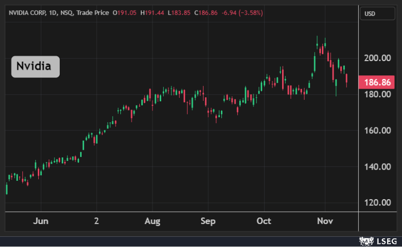 وهبط سهم Nvidia بنسبة 3.6% ليسجل أدنى إغلاق يومي في 3 أسابيع، وهوى سهم Tesla بنسبة 6.6% مسجلاً أكبر خسارة يومية في نحو 4 أشهر.